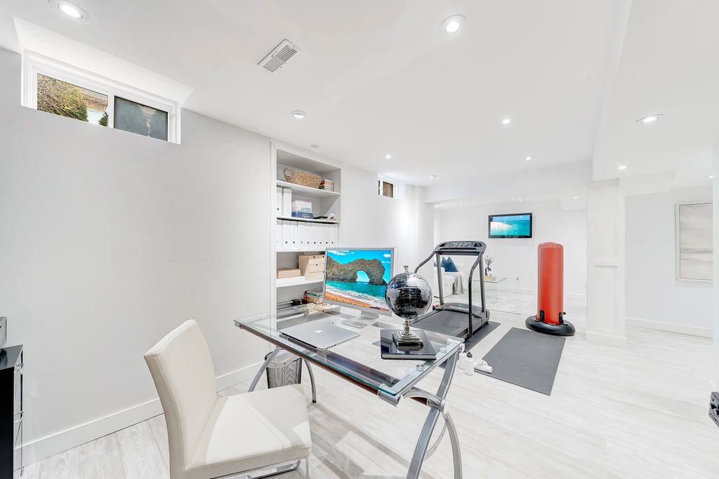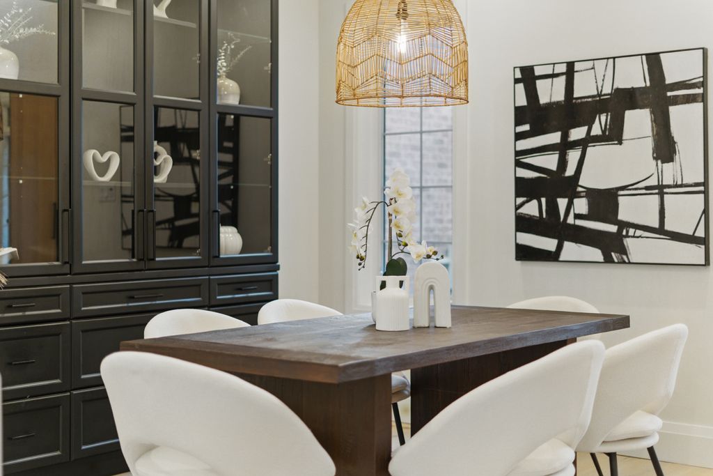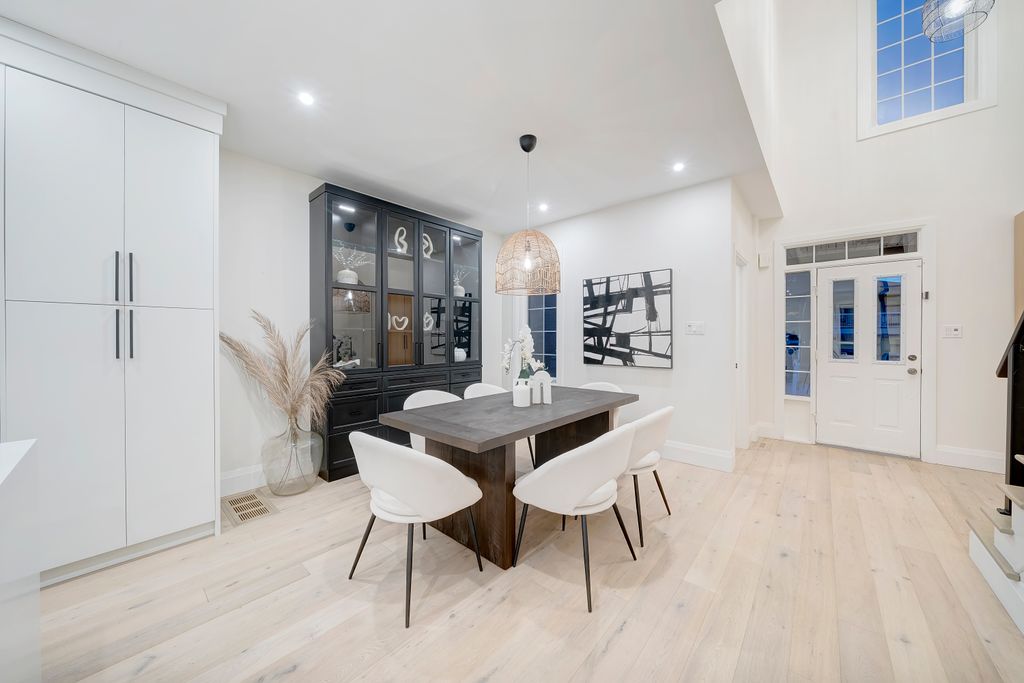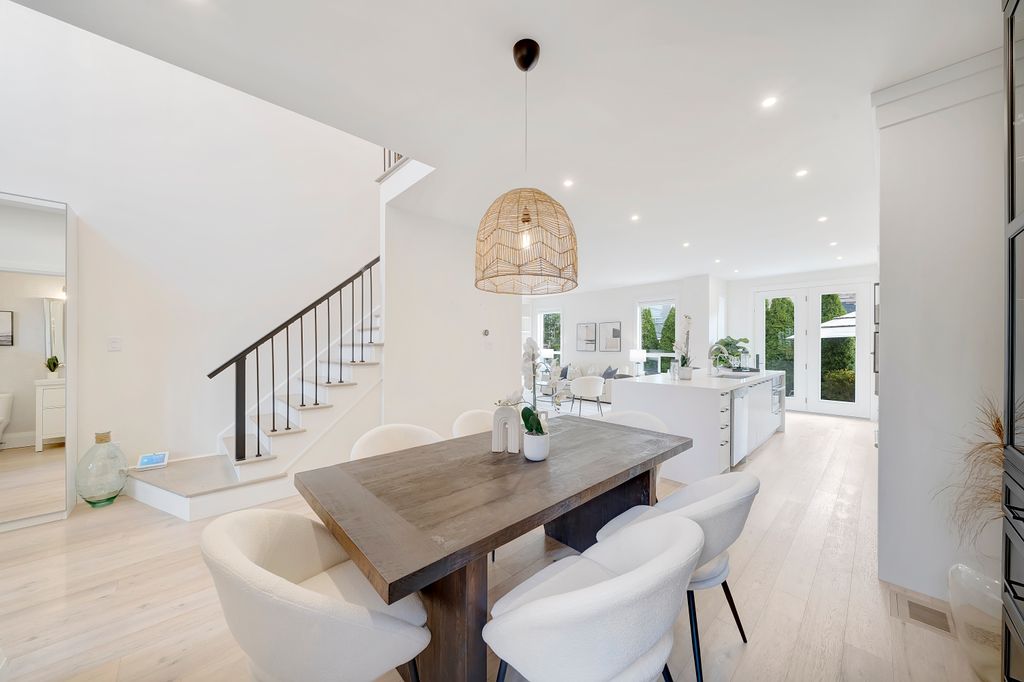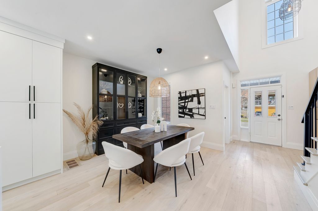 Renovated in 2020 with over $210K in premium upgrades, it features soaring 20-foot ceilings, custom millwork, and a chef’s kitchen with JennAir built-ins, a professional-grade Viking stove, and a stunning waterfall quartz island. The open-concept layout flows seamlessly for both everyday living and entertaining, while the upstairs primary suite offers a spa-like retreat with double closets and a luxurious ensuite.