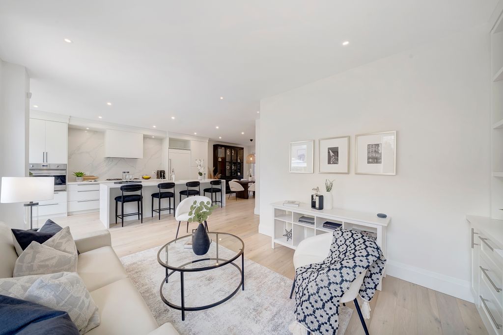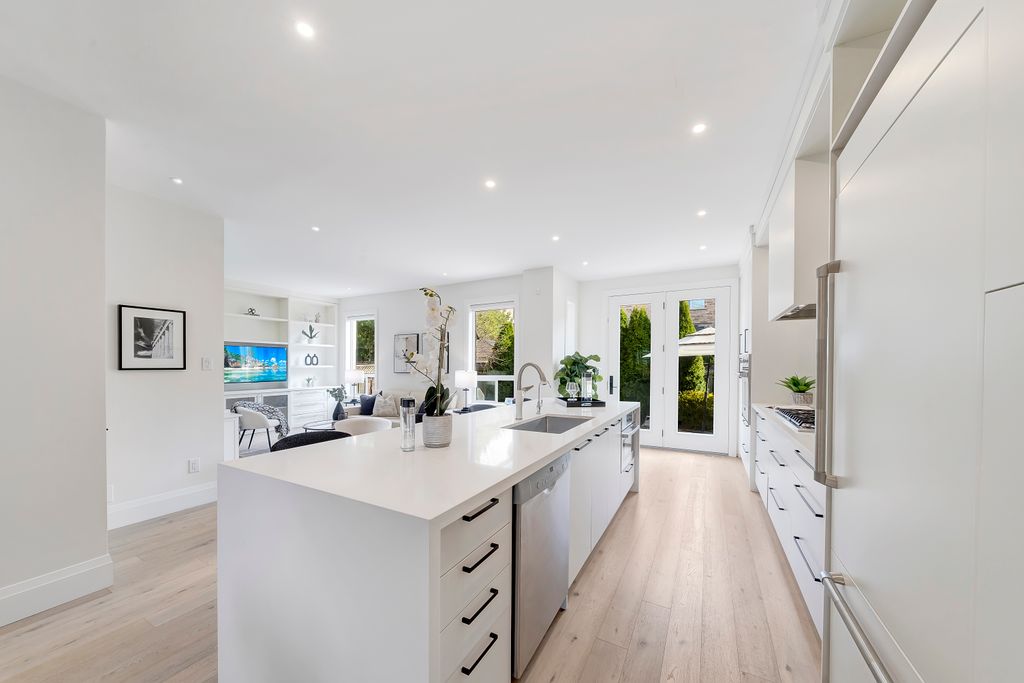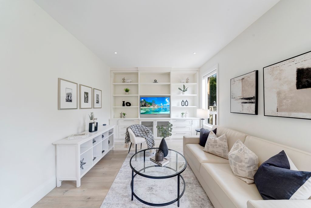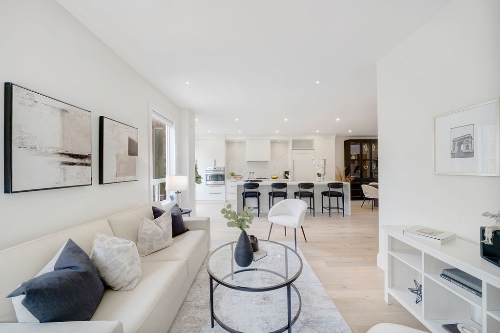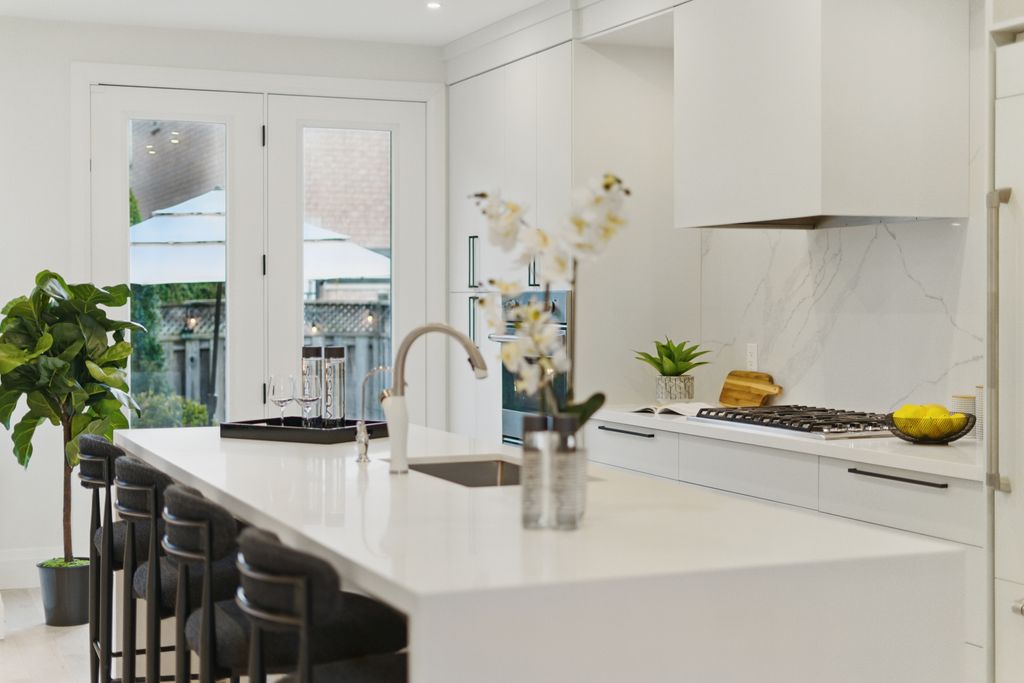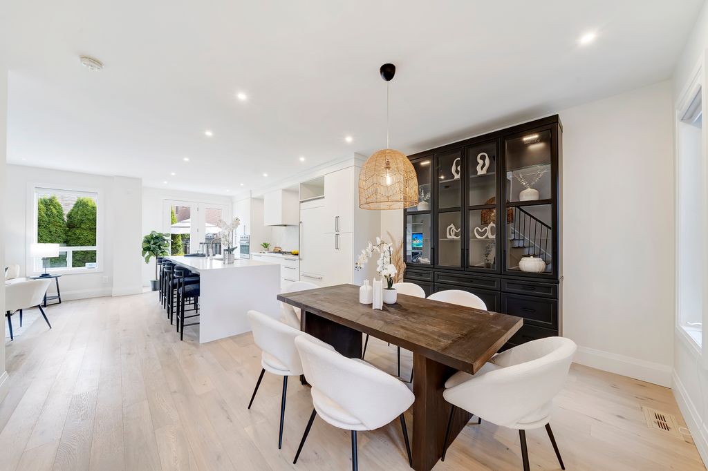 Renovated in 2020 with over $210K in premium upgrades, it features soaring 20-foot ceilings, custom millwork, and a chef’s kitchen with JennAir built-ins, a professional-grade Viking stove, and a stunning waterfall quartz island. The open-concept layout flows seamlessly for both everyday living and entertaining, while the upstairs primary suite offers a spa-like retreat with double closets and a luxurious ensuite.